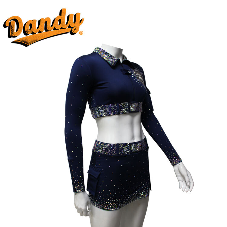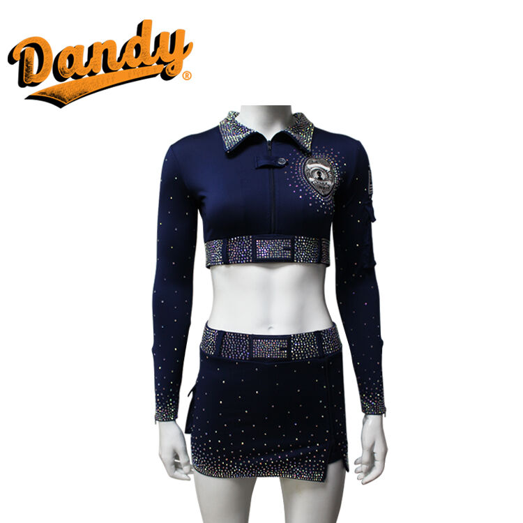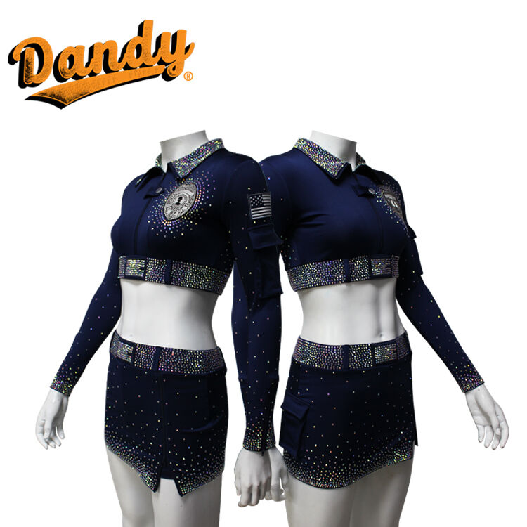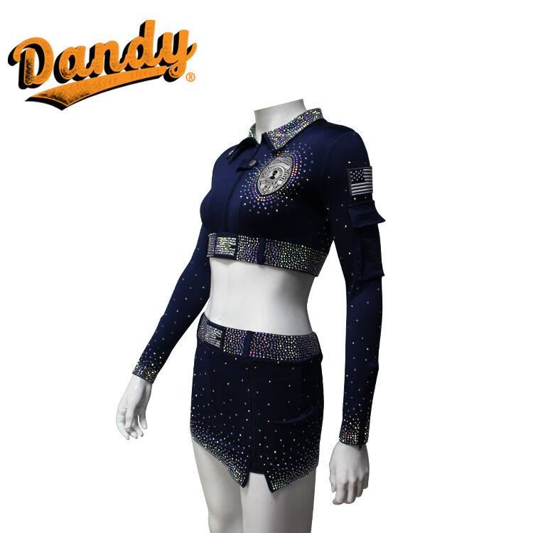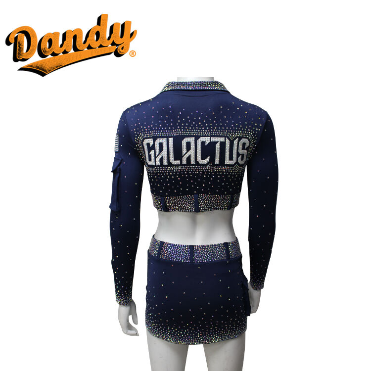 ప్రతి చీర్ సెట్ సాధారణంగా జాకెట్ లేని లేదా చిన్న జాకెట్తో పాటు మరోలింగే లేదా A-లైన్ స్కర్ట్ను కలిగి ఉంటుంది. ఈ బట్టలు శ్వాసక్రియకు అనువైన, తేలికైన బరువుతో పాటు తేమను పీల్చుకునే స్వభావం కలిగి ఉంటాయి, ఇవి అధిక శక్తితో కూడిన రూటిన్లలో క్రీడాకారులు చల్లగా మరియు పొడిగా ఉండటానికి అనుమతిస్తాయి. Spandex మరియు Lycra యొక్క అద్భుతమైన స్థితిస్థాపకత పునరుద్ధరణ వలన, ప్రదర్శకులు కదలికలో పూర్తి స్వేచ్ఛను పొందుతారు, ఇవి ఈ యూనిఫాంలను జంప్లు, ఫ్లిప్లు మరియు సంక్లిష్టమైన స్టంట్లకు అనువుగా ఉంటాయి. Mystique ఫ్యాబ్రిక్ బృందం యొక్క మొత్తం రూపాన్ని మెరుగుపరుస్తూ, పోటీలు లేదా ప్రదర్శనల సమయంలో వాటిని నిలబెట్టే విధంగా మెరిసే, లోహపు రకమైన ప్రకాశాన్ని జోడిస్తుంది.