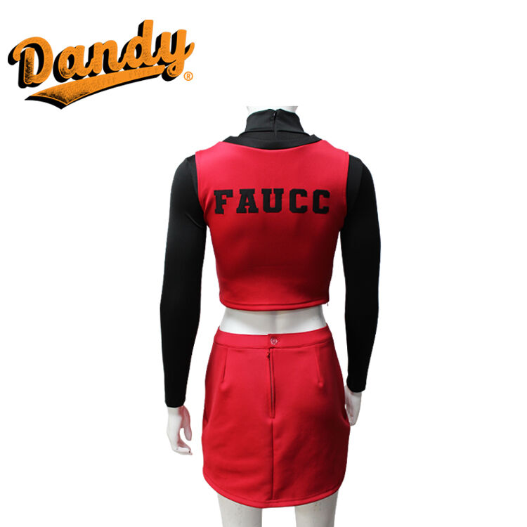 ప్రతి చీర్ సెట్ సాధారణంగా జాకెట్ లేని లేదా చిన్న జాకెట్తో పాటు మరోలింగే లేదా A-లైన్ స్కర్ట్ను కలిగి ఉంటుంది. ఈ బట్టలు శ్వాసక్రియకు అనువైన, తేలికైన బరువుతో పాటు తేమను పీల్చుకునే స్వభావం కలిగి ఉంటాయి, ఇవి అధిక శక్తితో కూడిన రూటిన్లలో క్రీడాకారులు చల్లగా మరియు పొడిగా ఉండటానికి అనుమతిస్తాయి. Spandex మరియు Lycra యొక్క అద్భుతమైన స్థితిస్థాపకత పునరుద్ధరణ వలన, ప్రదర్శకులు కదలికలో పూర్తి స్వేచ్ఛను పొందుతారు, ఇవి ఈ యూనిఫాంలను జంప్లు, ఫ్లిప్లు మరియు సంక్లిష్టమైన స్టంట్లకు అనువుగా ఉంటాయి. Mystique ఫ్యాబ్రిక్ బృందం యొక్క మొత్తం రూపాన్ని మెరుగుపరుస్తూ, పోటీలు లేదా ప్రదర్శనల సమయంలో వాటిని నిలబెట్టే విధంగా మెరిసే, లోహపు రకమైన ప్రకాశాన్ని జోడిస్తుంది.